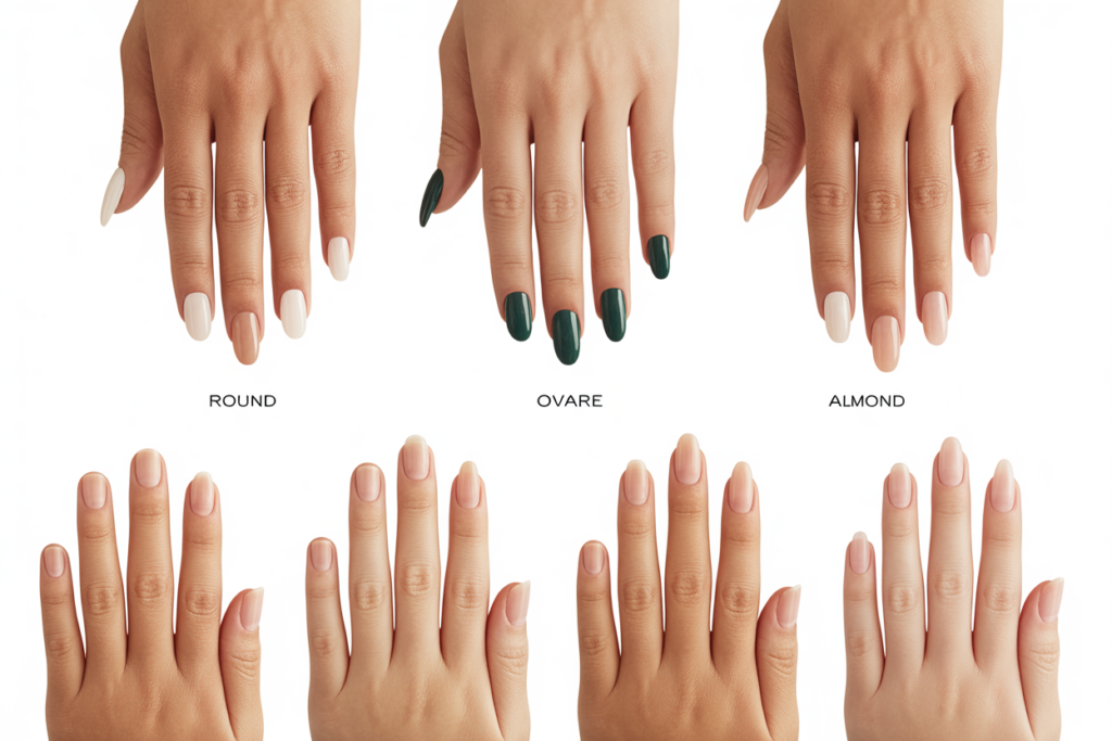 Nails can have different shapes. The shape can change how your hands look. Some common nail shapes are: